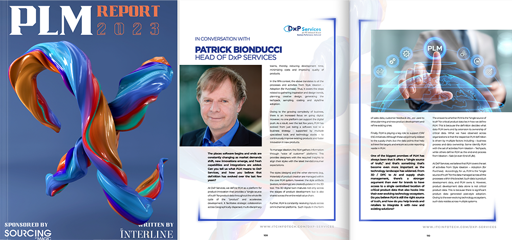 In an interview published in the PLM Report 2023 by The Interline, Patrick Bionducci, Head of DxP Services shares his views on the latest innovations and market trends in PLM and Fashion Technology. Also, featured is a detailed Capability Profile of DxP Services.